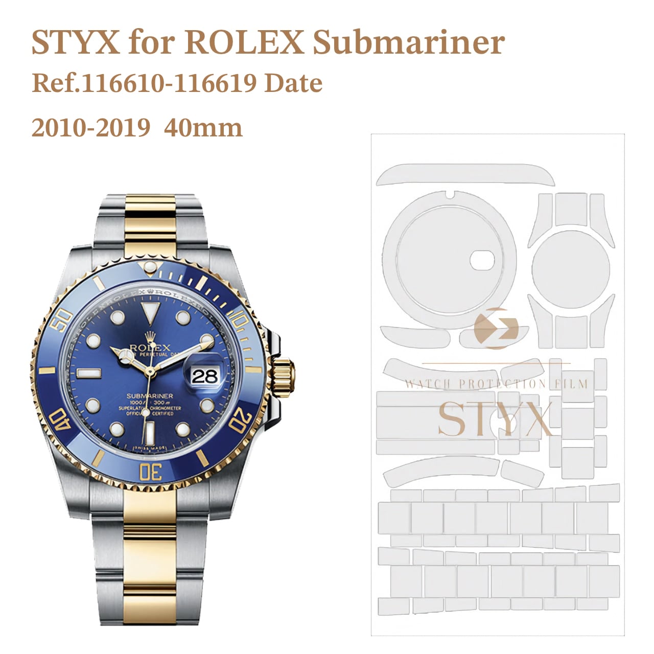 【STYX 保護フィルム】for Rolex Submariner 40mm 116610 series (2010-2019)